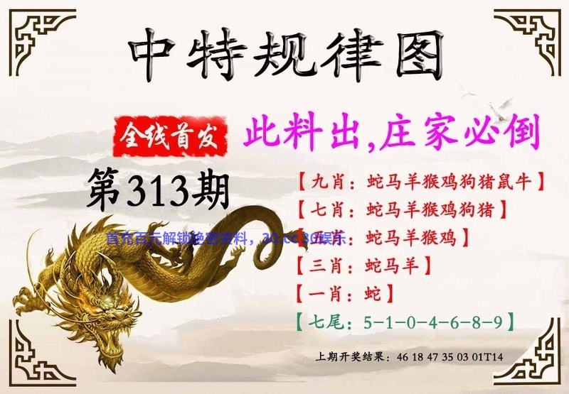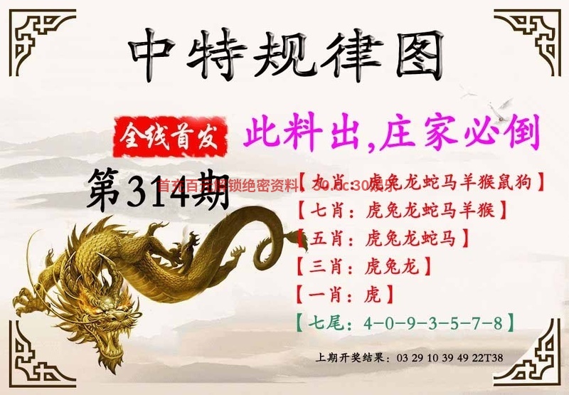 | 313期:九肖★狗兔虎蛇羊马鼠猴猪★开:龙38错 |