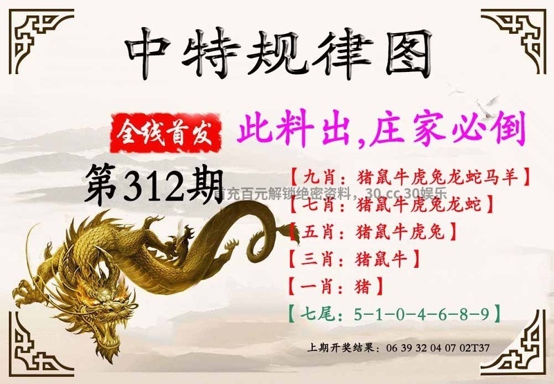 | 308期:九肖★鼠虎狗羊猴兔马牛龙★开:兔39中 |